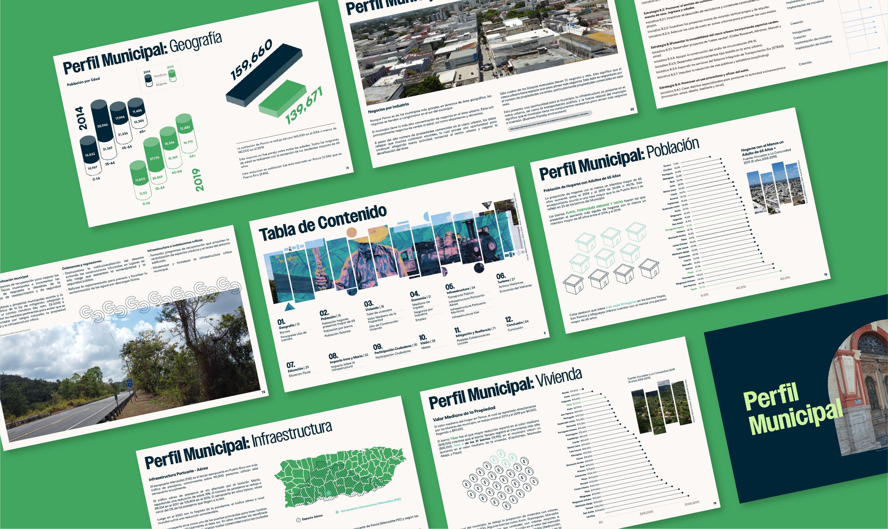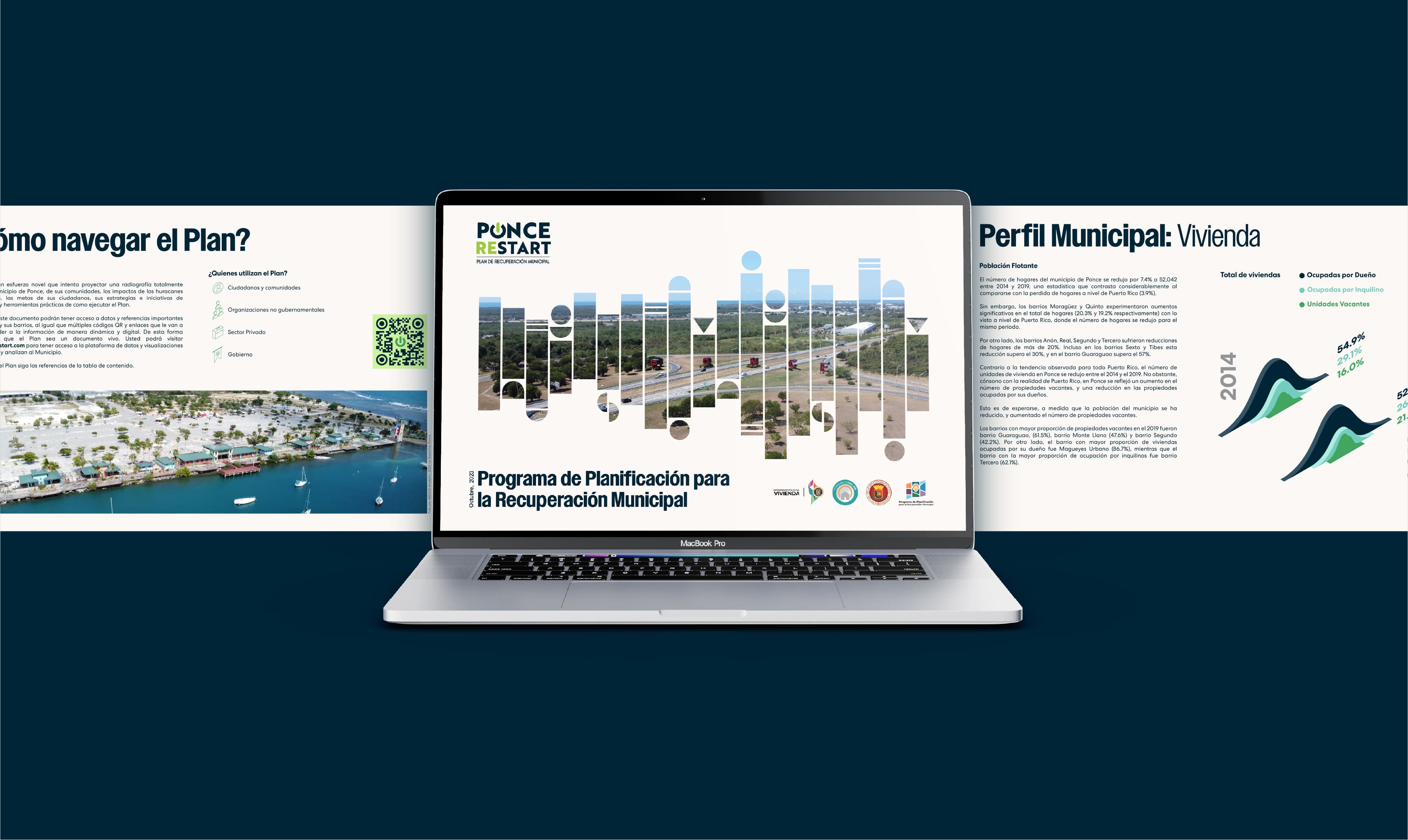 As part of the Ponce Restart project, we developed a functional and engaging visual language designed for members across all communities. Condensed typefaces provide strong headings, while sans serif ensures legible body text. A modern, high-contrast color palette highlights content and organizes information clearly.
