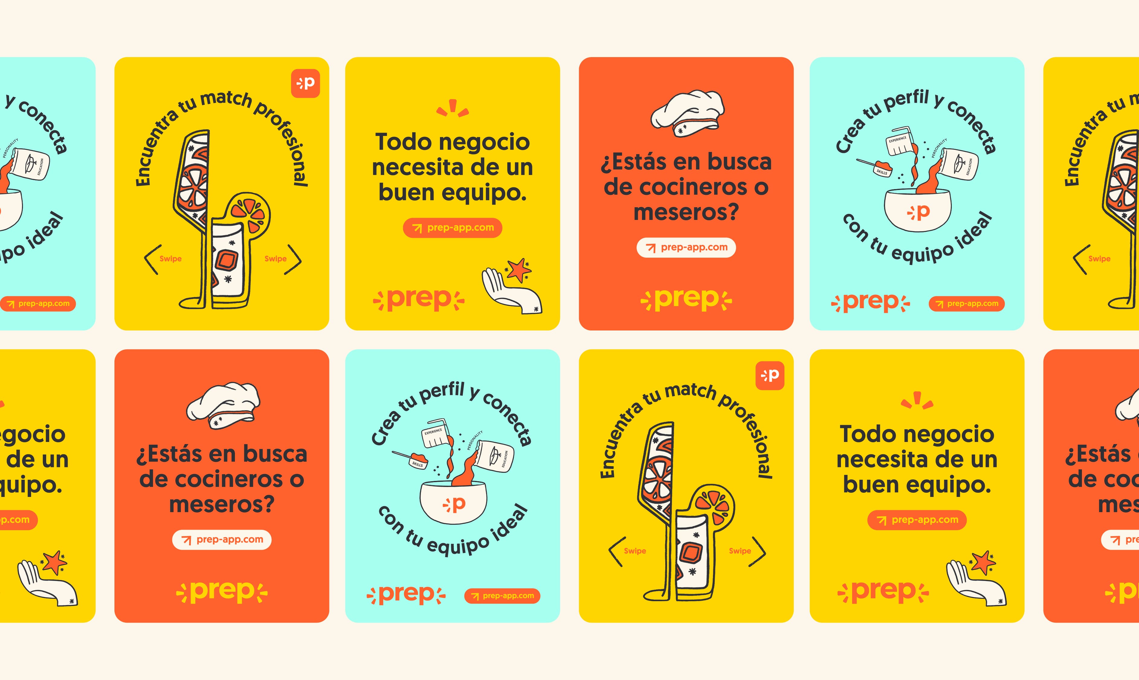 Prep App is a platform designed to connect businesses with the right employees, creating a more efficient, human, and seamless experience. The brand is built around the idea of connection, translating the digital action of a “click” or “tap” into a visual concept that represents the perfect match.